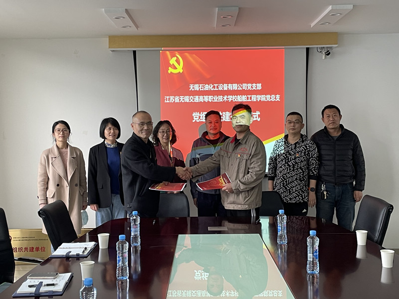 为充分发挥党建引领作用,探索学校党建工作与企业党建合作共建的新思路、新方法,进一步深化校企合作、产教融合。4月7日下午,船舶工程学院党总支与无锡市石油化工设备有限公司党支部在无锡石化公司会议室举行了党组织共建协议签订仪式。学校党委副书记、五级职员朱雨兰、无锡市石油化工设备有限公司副总经理王晨秋、党支部书记柳博,船舶工程学院院长吴志亚、党总支书记赵斌等参加活动。