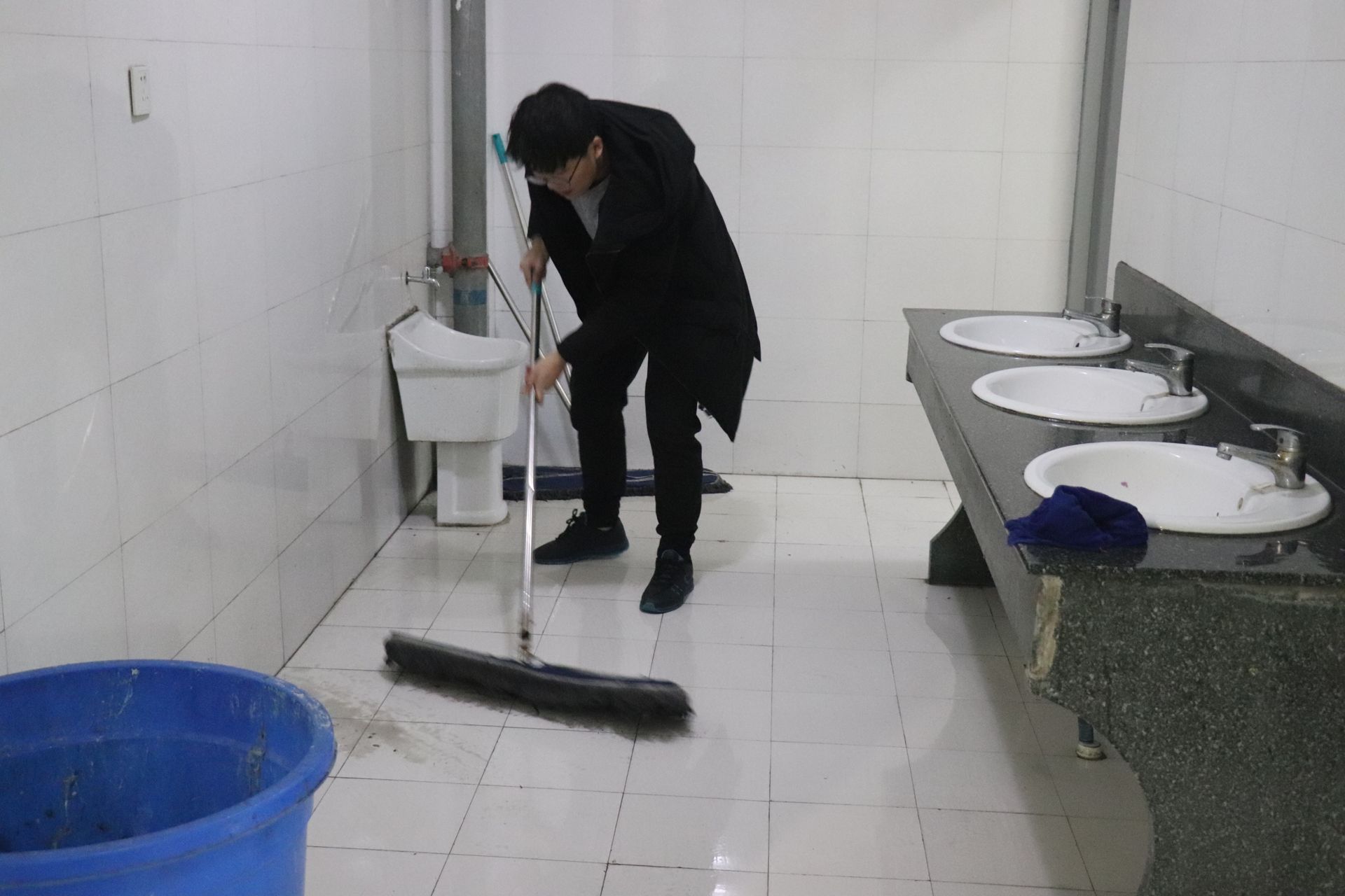 151111班团支部的同学在结束一天的实习后,团支书提出今天是雷锋日,不如大家一块将车间的角角落落仔细打扫打扫,话音刚落,已经有几个同学投入到打扫的行动中。