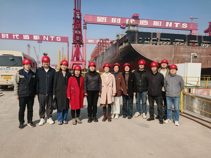 随后,全体人员一行前往江苏新时代造船有限公司,受到公司副总经理朱韩钢等领导的热情接待与周到安排。在企业相关负责人的陪同下,团队实地参观了船厂展厅,深入走访了核心生产车间与智能生产线,直观感受了船舶制造的现代化生产流程与技术实力。交流过程中,船厂负责人围绕船舶智能制造技术的发展现状、产业布局规划及行业未来发展趋势进行了详细阐述。双方聚焦产教融合、人才培养与行业需求精准对接等核心议题展开深入研讨,就学科建设优化、技能人才共育等方面交换了意见。此次走访为学院进一步推动学科建设与产业需求深度契合、完善人才培养体系提供了极具价值的实践参考,也为后续深化校企合作奠定了良好基础。