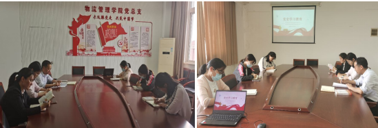 2021年5月7日下午,物流管理学院两个教研室党支部全体党员同志集中开展了党史学习活动。本次学习的主要内容有:1、学习省锡交纪[2021]2号文《开云手机客户端关于组织开展“5·10”思廉月活动的通知》;2、观看视频《百炼成钢》第31集:走自己的路和第32集:正确处理人民内部矛盾;3、领读学习《中国共产党简史》第七章:外交方针政策的调整和邓小平南方谈话。