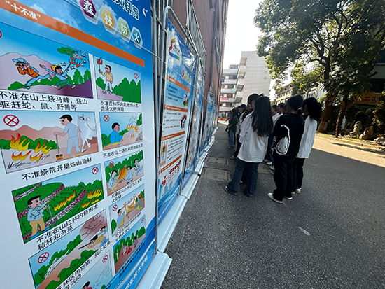 在展出过程中,班主任带领班级学生,物业、食堂服务外包单位组织员工集中观看,并做好签到和教育记录,做到全员参与受教育,一个都不少。为了进一步发挥展板内容的宣传教育功能,还将展板上的安全知识内容做为班级黑板报的出版内容,不仅丰富了黑板报的出版内容,更扩大了安全宣传教育效果,为构建安全和谐的校园环境打下良好的安全基础。