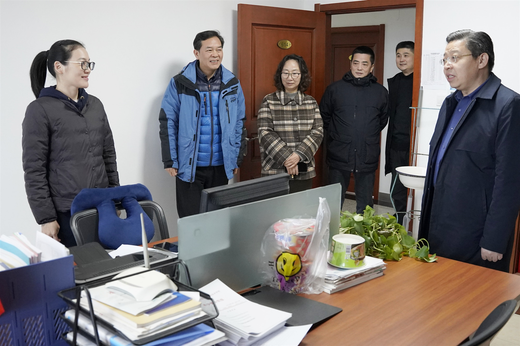 2月10日,新学期开学第一天,学校党委书记、校长李虎,学校党委副书记、五级职员朱雨兰,副校长耿兴华、倪依纯,纪委书记邢勇,副校长范次猛走访调研学校各处室、院部,为大家提士气、鼓干劲、解难题。