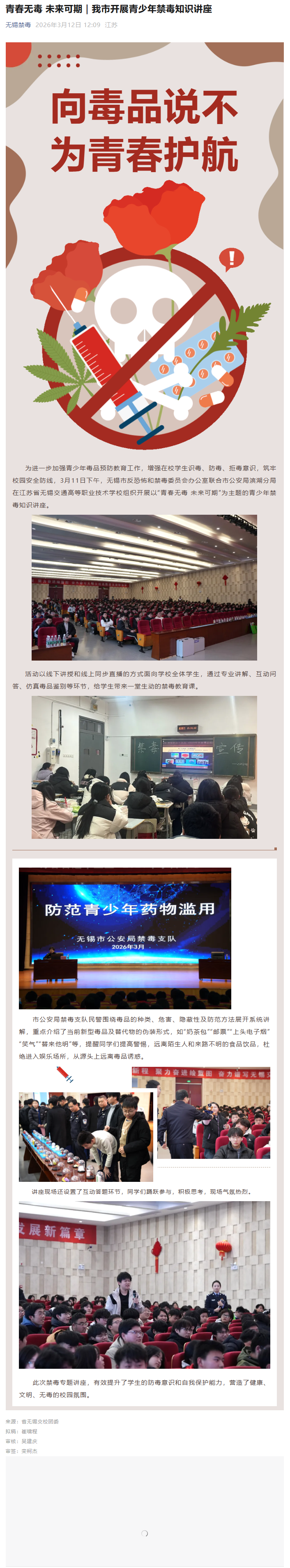 无锡禁毒:青春无毒 未来可期|我市开展青少年禁毒知识讲座