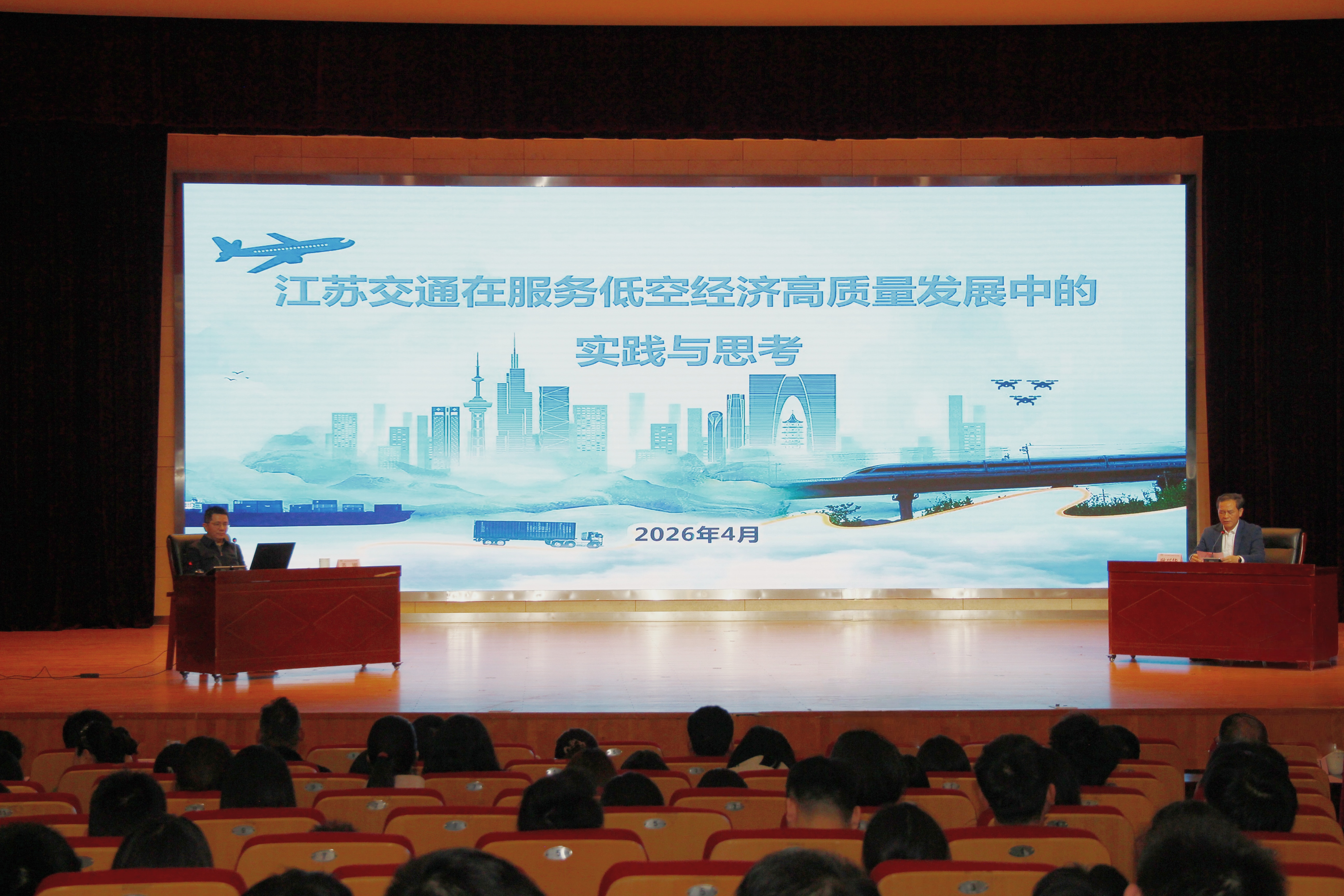 揭牌仪式后,董刚处长作《江苏交通在服务低空经济高质量发展中的实践与思考》主题报告,围绕低空经济内涵趋势、交通与低空经济关联、江苏实践与展望展开分享,为学校无人机培训与低空人才培养明确方向、提供遵循。