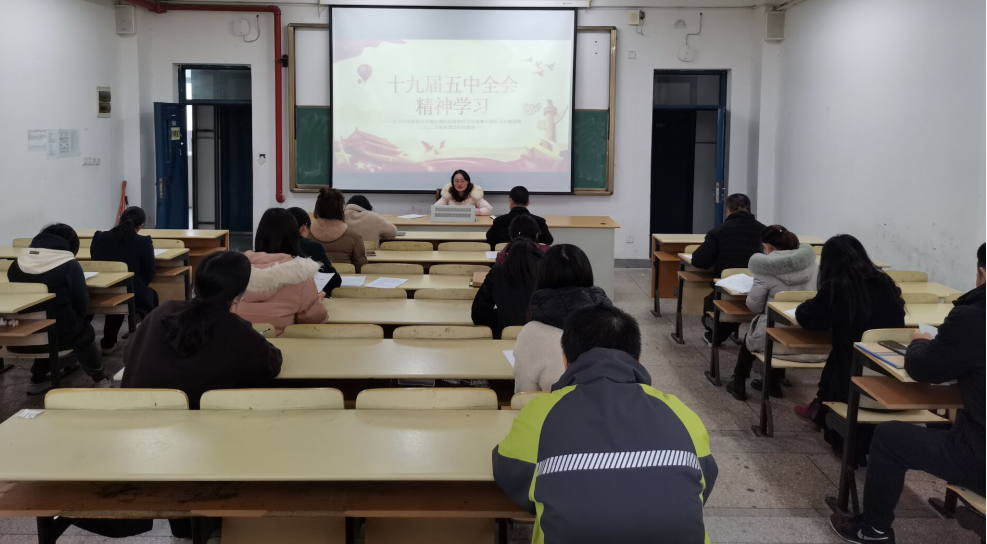 12月11日中午12:00,根据学校《关于深入学习宣传贯彻党的十九届五中全会精神》的通知要求,为让党员们更加深入学习了解十九届五中全会精神,基础教学部党总支开展专题党课,组织学习十九届五中全会精神,本次党课由基础教学部党总支副书记杨凤琴讲授,全体党员参加了党课学习。