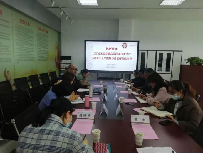3月24日,基础教学部主任、马克思主义学院常务副院长陈建明、马克思主义学院副院长杨凤琴一行七人赴江苏信息职业技术学院调研马克思主义学院建设发展情况。江苏信息职业技术学院马克思主义学院党支部书记、副院长刘海滨、概论教研室主任邢慧、思法教研室主任冯莹、教学名师工作室负责人顾伟黎参加了调研座谈会。