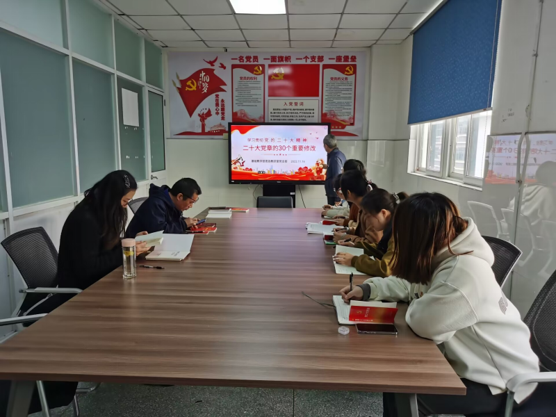 各党支部高度重视,精心安排,认真准备。党支部书记领学《高举中国特色社会主义伟大旗帜 为全面建设社会主义现代化国家而团结奋斗》报告内容(节选)、《中国共产党第二十次全国代表大会关于十九届中央纪律检查委员会工作报告的决议》、中国共产党第二十次全国代表大会关于《中国共产党章程(修正案)》的决议、《中共中央关于认真学习宣传贯彻党的二十大精神的决定》等文件,坚持读原著、学原文、悟原理。