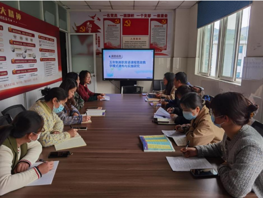 王老师在会上详细阐释了思政元素的五个维度和英语课堂思政教学模式的初步构想。英语课组成员围绕课题展开了积极讨论