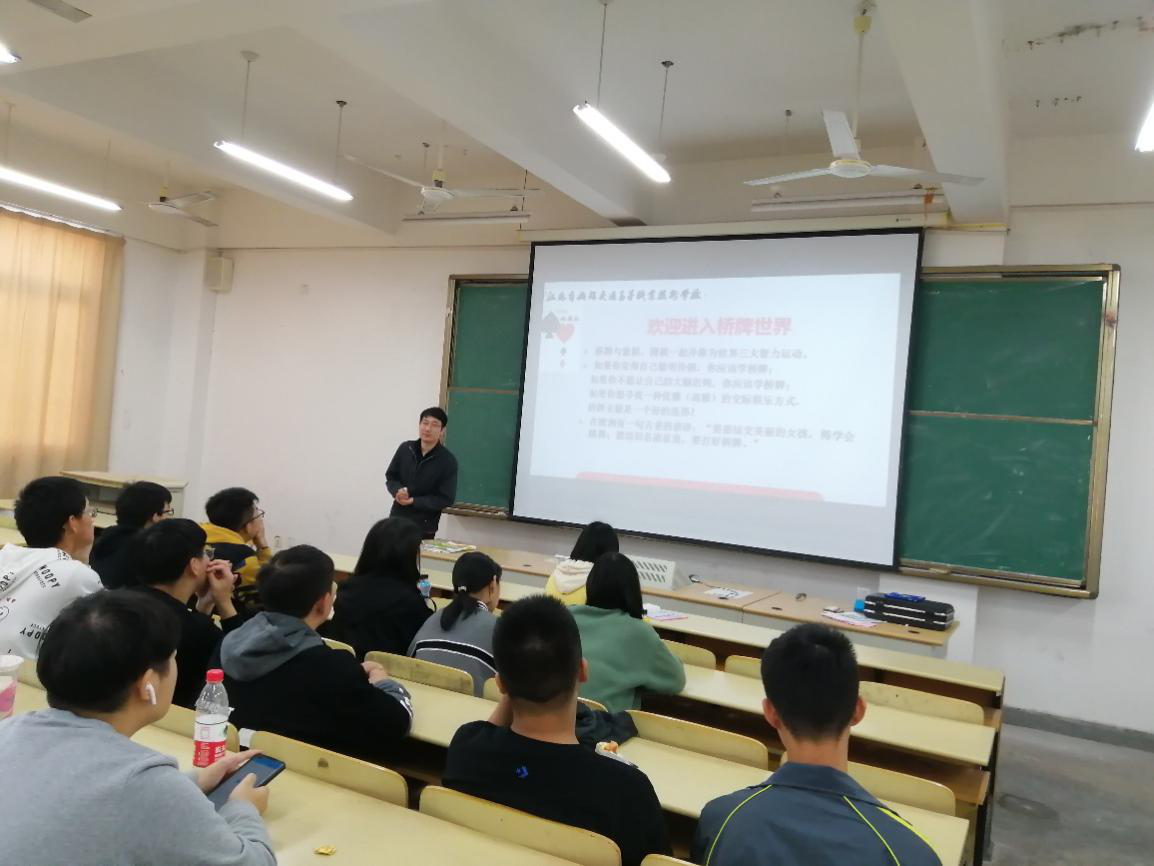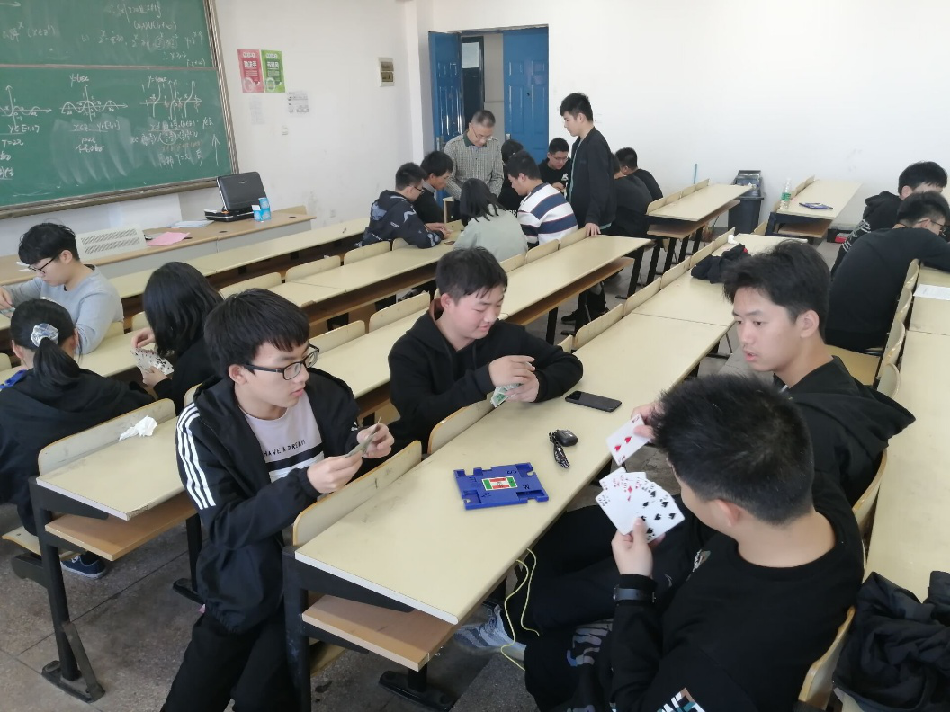 随后,同学们在指导老师的帮助下,完成组队,并进行了现场实际打牌活动。祁文坤老师针对学生遇到的问题,进行了耐心、细致的讲解。