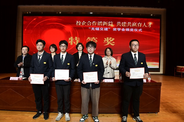 会上,无锡交建党委副书记叶亚娟宣读2021年度无锡交建奖学金表彰决定。171421班朱金丰等4名学生获得一等奖,191432班吕倪昊等3名学生获得二等奖,191421班程一鑫等4名学生获得三等奖学金,201411班张昊等28名学生获得四等奖学金。无锡交建奖学金是无锡市交通建设工程集团有限公司出资在我校交通工程学院设立的奖学金,每年奖金2万元。