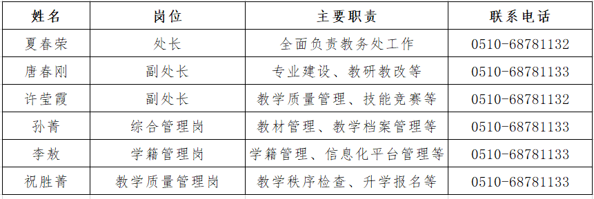 教务处是在校长和分管教学的领导指导下开展工作,是学校教学工作的组织、协调、管理的综合职能部门。主要负责制定学校教学工作计划、组织开展专业建设和教师业务考核评教活动、对二级学院(部)教研室进行业务指导;负责学生学籍管理、考务管理、技能竞赛管理、学生成绩管理,统筹协调中高职衔接立交桥及有关升学教育的工作,负责组织各类教学竞赛、师生技能比赛等工作。