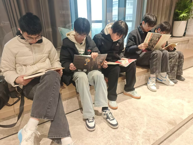 活动当天,同学们齐聚书香四溢的无锡新华书店。在这里,大家暂时放下了专业课本与实训工具,在琳琅满目的书海中自由徜徉。我们遇到了一位老奶奶,她也沉浸在知识的海洋里无法自拔,通过交流,说年轻时,学是为了理想,为了安定;中年时,学是为了补充空洞的心灵;老年时,学则是一种意境,慢慢品味,自乐其中。有的同学沉浸在文学经典里,感受文字的魅力与哲思的深邃;有的同学翻阅前沿科技、人文历史或经济管理类书籍,拓宽知识视野;还有的同学对职业技能提升、大国工匠精神相关的读物产生了浓厚兴趣,认真研读。宁静的阅读氛围中,只闻书页翻动的沙沙声,同学们专注的身影构成了店内一道亮丽的风景线。阅读间隙,大家还自发围坐,轻声交流着各自的阅读心得与书中精彩片段,思想的火花在交流中悄然碰撞与点亮。在这次活动结束后我们都收获了不少新知识,每个同学都购买了自己感兴趣的书籍,在回校后准备继续细读其中那无穷的知识,品味其中深意。