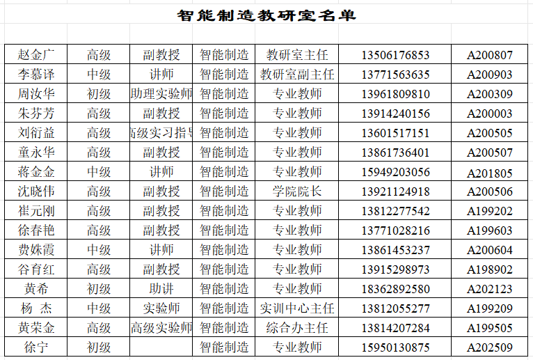 机械工程学院智能制造教研室人员情况
