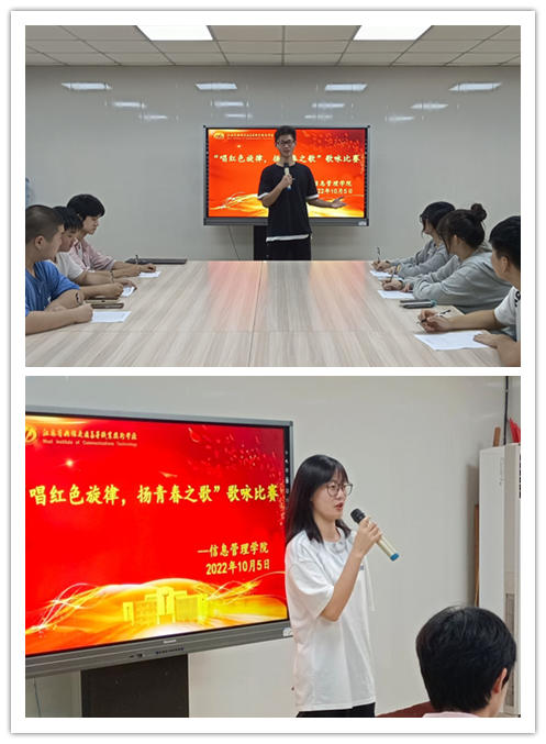 为进一步庆祝国庆节的到来,追寻革命先辈的光辉足迹,传承经典文化。2022年10月5日晚六点,信息管理学院在正德楼三楼会议室举办了“唱红色旋律,扬青春之歌”主题歌咏比赛,国庆假期留校的十余位同学参加了比赛。