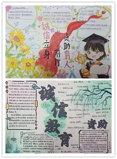 为深入落实国家资助政策,强化学生诚信意识与感恩情怀,引导学生树立正确的世界观、人生观和价值观,营造诚信文明、向上向善的校园氛围,近日,我院成功举办“资助诚信教育”主题手抄报活动,全体学生积极参与,用笔墨传递诚信力量,用创意诠释感恩初心。