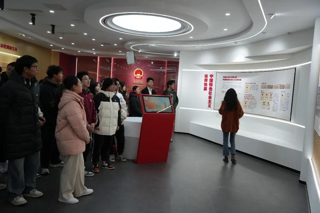 “宪法诞生于何时?”“宪法如何伴随我们一生?”在无锡市滨湖区宪法宣传教育体验馆,交通工程学院、汽车工程学院的同学们在光影图文与互动体验中寻找答案。场馆内,专业讲解员从“五四宪法”的历史讲起,借助生动的图文展板,将宪法的发展历程、根本制度、公民权利义务等娓娓道来。同学们在“宪法与生活”展区驻足,直观感受宪法如何贯穿从出生到教育、工作及人生全程。互动答题区更是气氛热烈,抢答声此起彼伏——在“学中练、练中悟”的趣味体验中,宪法知识不再遥远,守宪尊法的种子在同学们心中悄然萌芽。