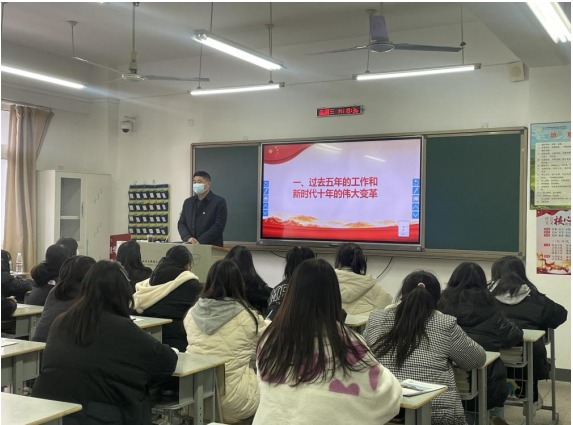 邢书记以“深入学习宣传贯彻党的二十大精神”为主题,向学生宣传讲解党的二十大精神。在邢书记的带领下,全体同学深入学习了党的二十大报告,回顾了历年来习近平总书记对青年的寄语。并号召广大青年学生要坚定不移听党话、跟党走,要成为有理想、敢担当、能吃苦、肯奋斗的新时代好青年,勉励学生要做学业上的攀登者和悟道者,做民族复兴的担当者和奋斗者,做中华文明的继承者和弘扬者,做马克思主义的信仰者和实践者。