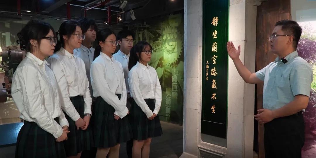 在博物馆肃穆的氛围中,师生们驻足于一尊斑驳厚重的石磨前。朱沛老师以这尊石磨为“精神图腾”,引导同学们细细观察其上每一道深浅不一的刻痕。“这些裂痕,不仅是岁月磨砺的印记,更是民族工商业在艰难中起步、在奋进中成长的见证。”朱老师讲解道。石磨无言,却仿佛在诉说当年实业家们“实业救国”的初心、工人们“精益求精”的执着,以及那份融入民族血脉的坚韧与自强。同学们凝视着石磨,仿佛能听见历史轰鸣的磨碾声,触摸到中国近代工业从无到有、由弱图强的“筋骨”。