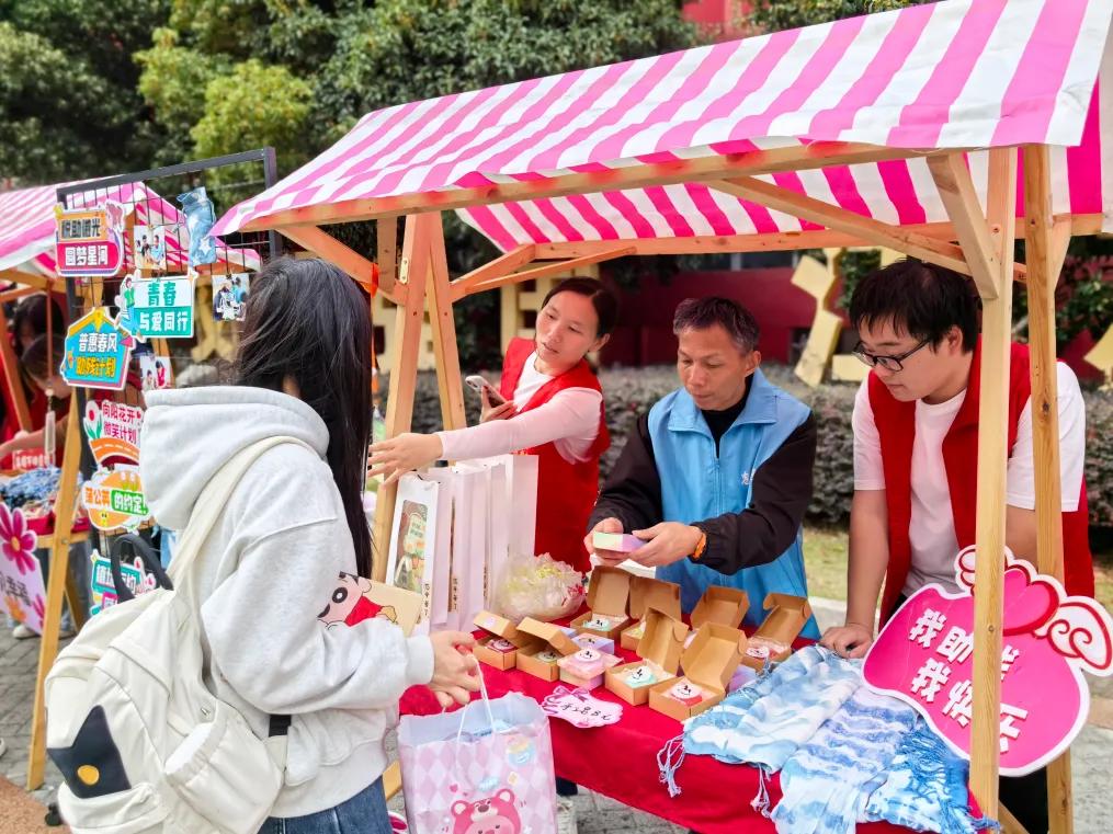 义卖环节将活动推向高潮。同学们穿梭于摊位间,精心挑选心仪的手工艺品,用实际行动支持残疾朋友的创作。“这些作品不仅是艺术品,更是对残疾人群体创造力的认可,能为公益出力特别有意义!”一名购买扎染围巾的学生表示。现场爱心涌动,作品与饮品被相继认购,义卖所得不仅为残疾朋友带来实际收益,更架起了残健心灵沟通的桥梁。