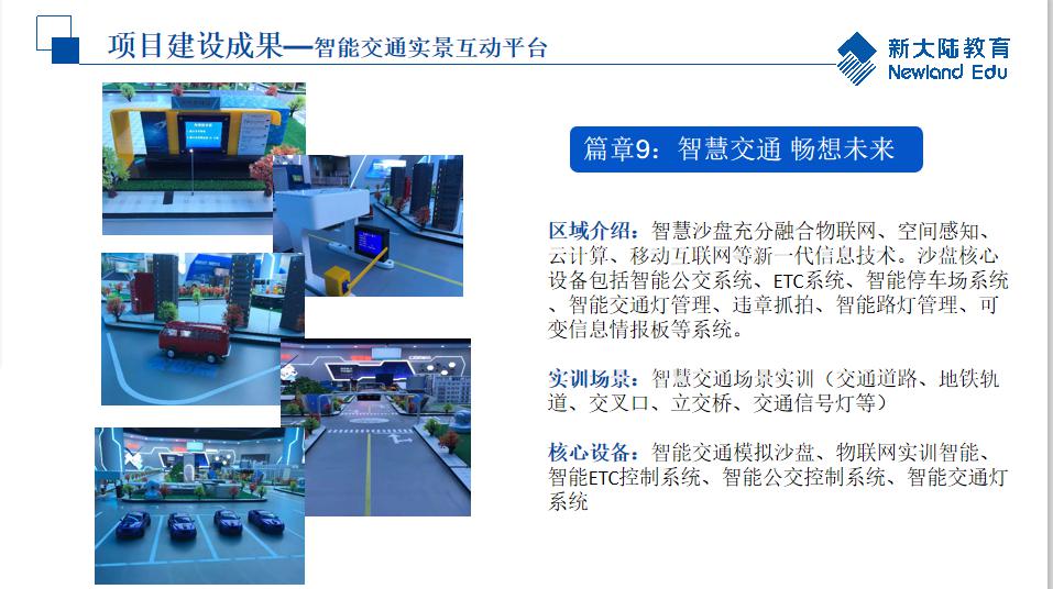 实训基地严格按照建设方案组织建设,精心施工,精益求精,追求卓越,已建成物联网关键技术实训室、智慧物流实训室、物联网综合应用实训室、智能交通实训室以及交通物联网技术综合展厅。综合展厅主要由开启智慧之路(综合可视化平台)、智融科技全数前行(智慧物流)、智控互联跨界融合(识别系统、智慧出行畅想生活(五峰山智慧大桥)、智能物联 创造无限(智慧路口)、智融智联智控慧行(智能快递)、智慧城市(交通大沙盘)、智慧护栏、智慧灯杆、文化长廊等部分组成,实训基地整体氛围极具现代科技感。